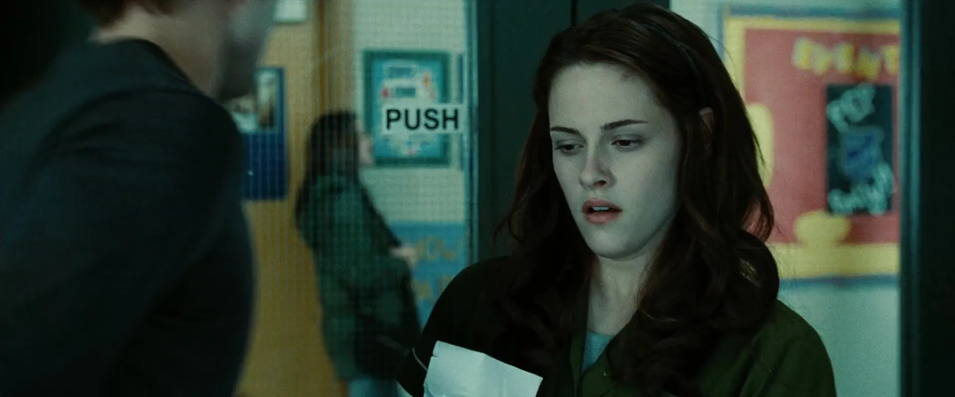 Cast: Kristen Stewart as Bella Swan, Robert Pattinson as Edward Cullen, Billy Burke as Charlie Swan, Peter Facinelli as Dr. Carlisle Cullen, Elizabeth Reaser as Esme Cullen, Cam Gigandet as James, Ashley Greene as Alice Cullen, Anna Kendrick as Jessica, Nikki Reed as Rosalie, Taylor Lautner as Jacob Black, Kellan Lutz as Emmet Cullen, Jackson Rathbone as Jasper, Michael Welch as Mike Newton, Gil Birmingham as Billy Black, Justin Chon as Eric, Christian Serratos as Angela, José Zúñiga as Mr. Molina, Rachelle Lefevre as Victoria, Edi Gathegi as Laurent, Sarah Clarke as Renée, Matt Bushell as Phil, Gregory Tyree Boyce as Tyler, Trish Egan as High School Administrator, Ayanna Berkshire as Cora, Ned Bellamy as Waylon Forge, Bryce Flint-Sommerville as Mine Security Guard, Solomon Trimble as Jacob's Friend, Alexander Mendeluk as Frat Boy, Hunter Jackson as Frat Boy, Gavin Bristol as Frat Boy, Sean McGrath as Frat Boy, Katie Powers as Waitress, Catherine Grimme as Young Bella, William Joseph Elk III as Native Wolf Pack Member #2 (uncredited), Victoria Geil as 1920's Vampire Victim (uncredited), Stephenie Meyer as Diner Customer (uncredited), Rick Mora as Native Werewolf Tribe #1 - Flashback Sequence (uncredited), Rana Morrison as Patron in Restaurant (uncredited), Edward Stiner as Man in Cafe (uncredited), Robert Zorn as Logger (uncredited), Humberto Amor as Jacob in Spanish (uncredited), Kristopher Hyatt as Embry Call (uncredited), Sherry Nelson as Restaurant Patron (uncredited), Tyler Nordby as Biology Class Student (uncredited), Trip Ross as Coffee Shop Guy (uncredited), Josh Turner as Townsperson (uncredited), Maggie-Jo Turner as Volleyball Player (uncredited)